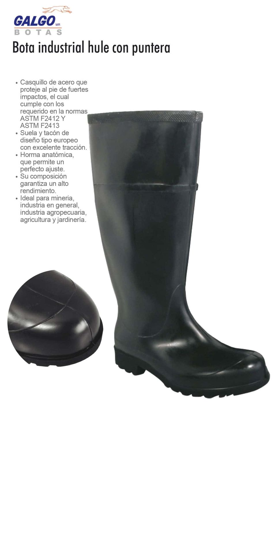 BOTA INDUSTRIAL DE HULE CON PUNTERA DE ACERO COLOR NEGRO GALGO 40